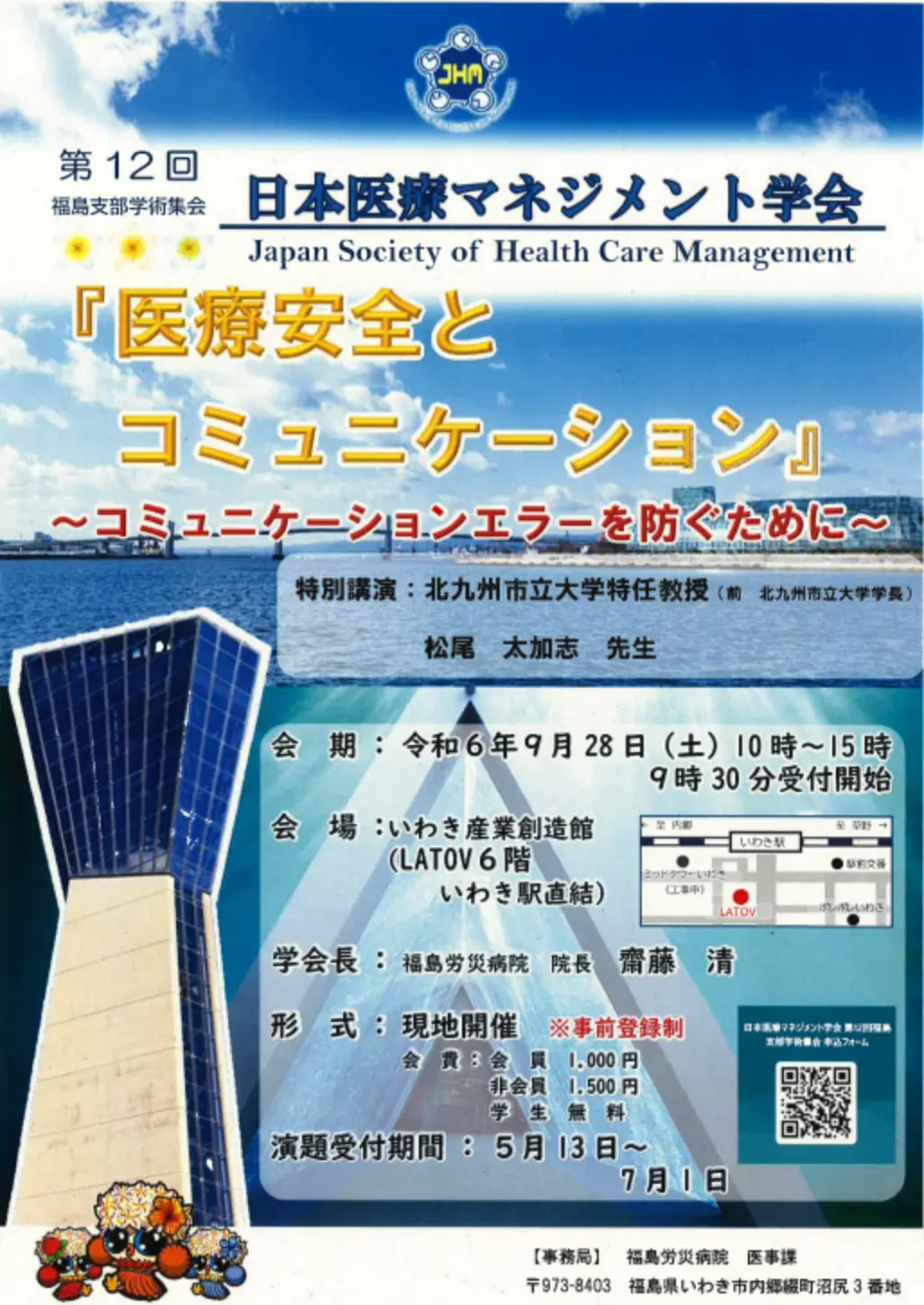 日本医療マネジメント学会第12回福島支部学術集会[9.28.] 投稿日 2024-06-05 更新日 2026-03-26 著者 fukushima-st カテゴリー トピックス 日本医療マネジメント学会第12回福島支部学術集会[9.28.] 詳細はこちらのPDFファイルをご確認下さい この記事を書いた人 fukushima-st 記事一覧
